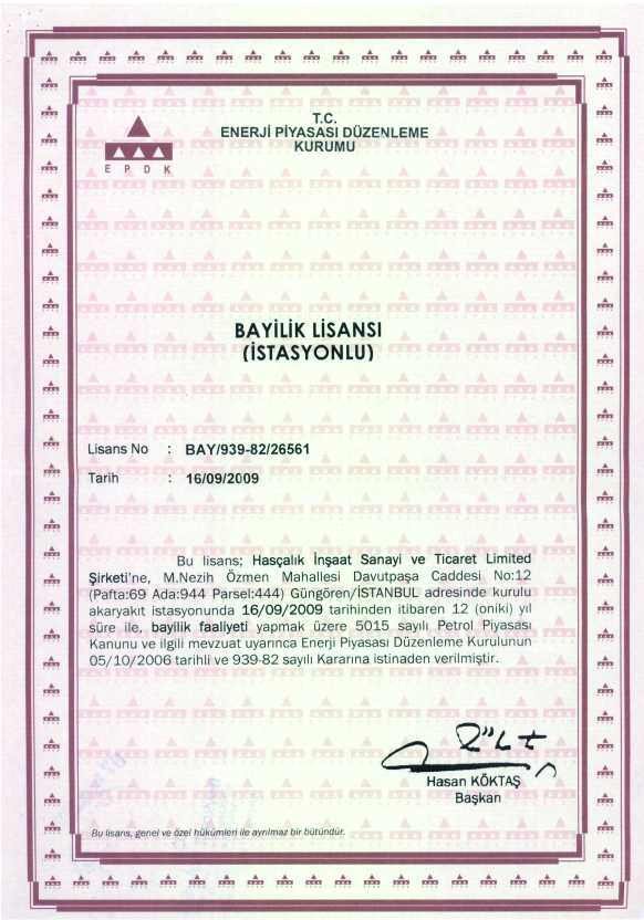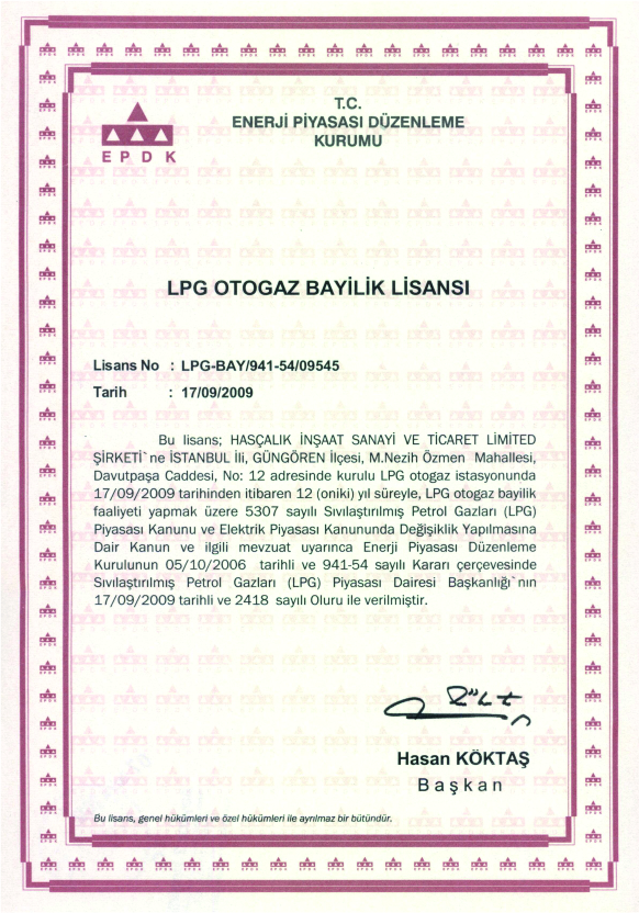 - EPDK LPG Otogaz Bayilik Lisansı